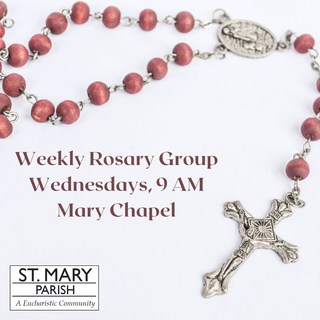 You may also come join us in praying the Rosary every Wednesday at 9 am in the Mary Chapel. "Newbies" are welcome!